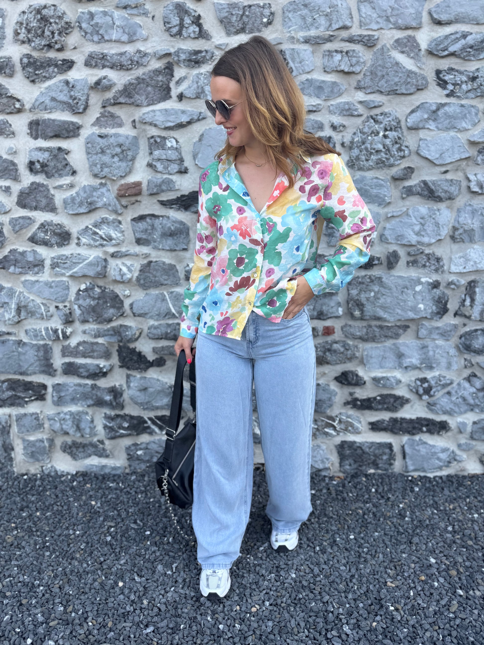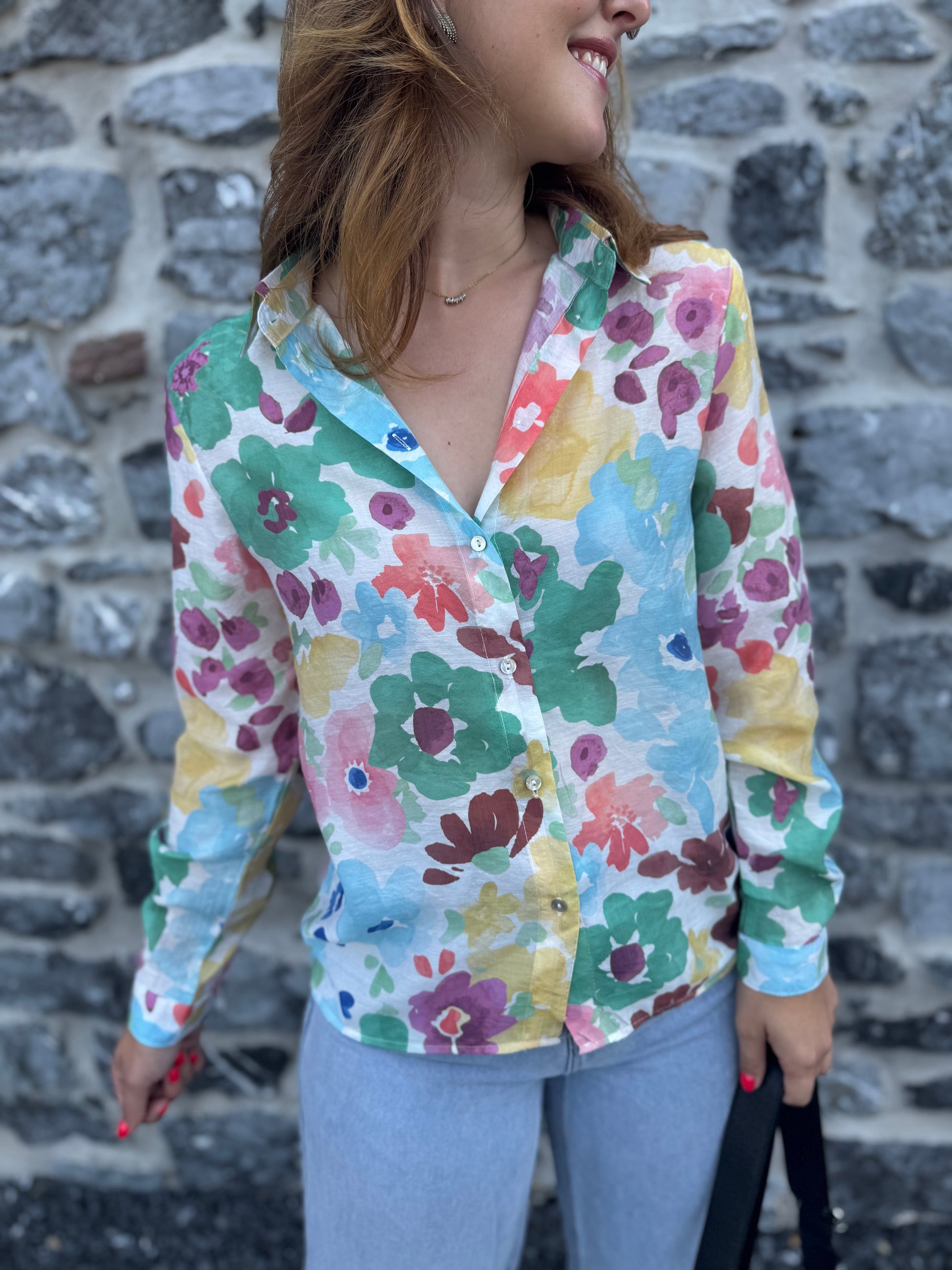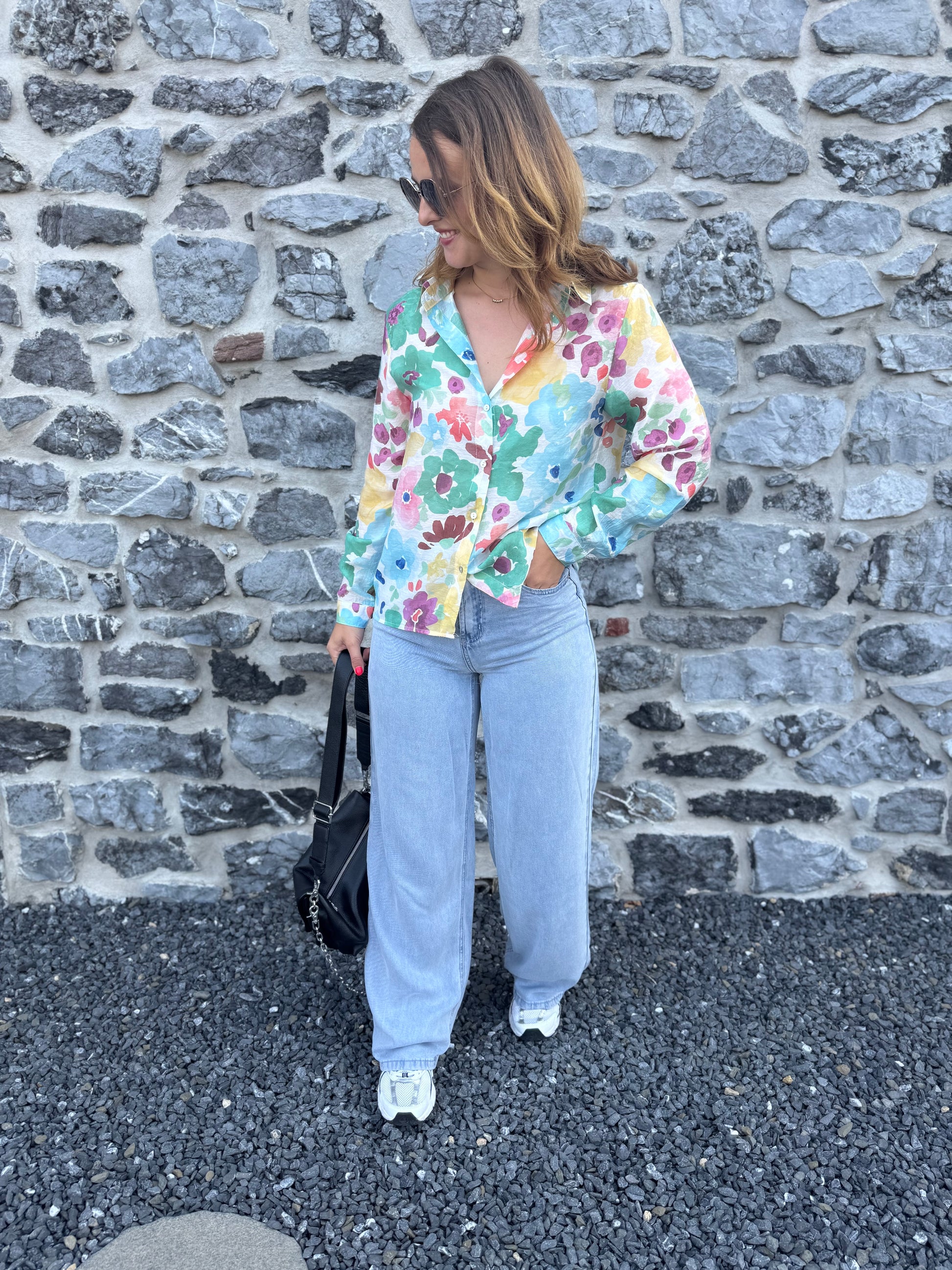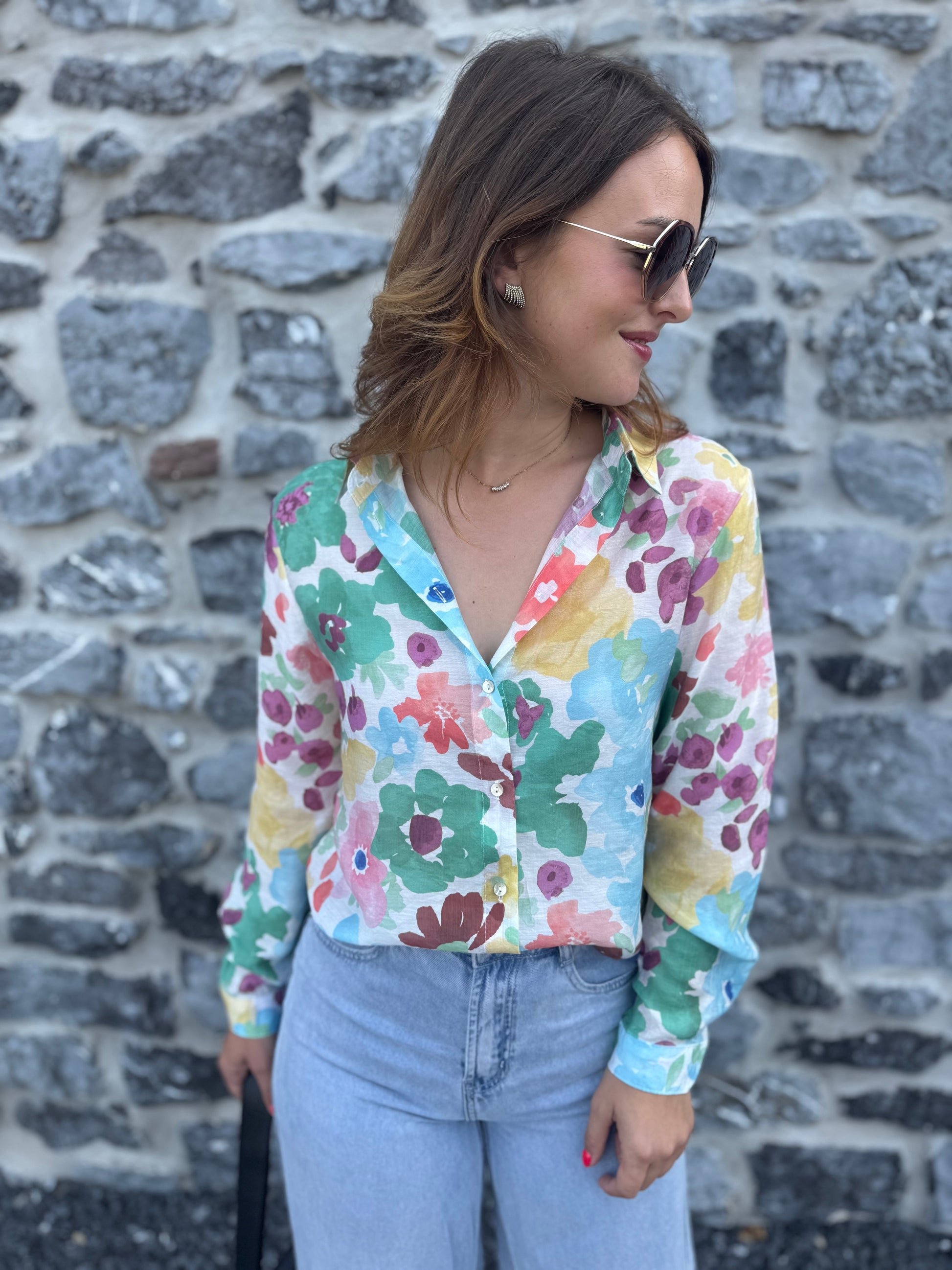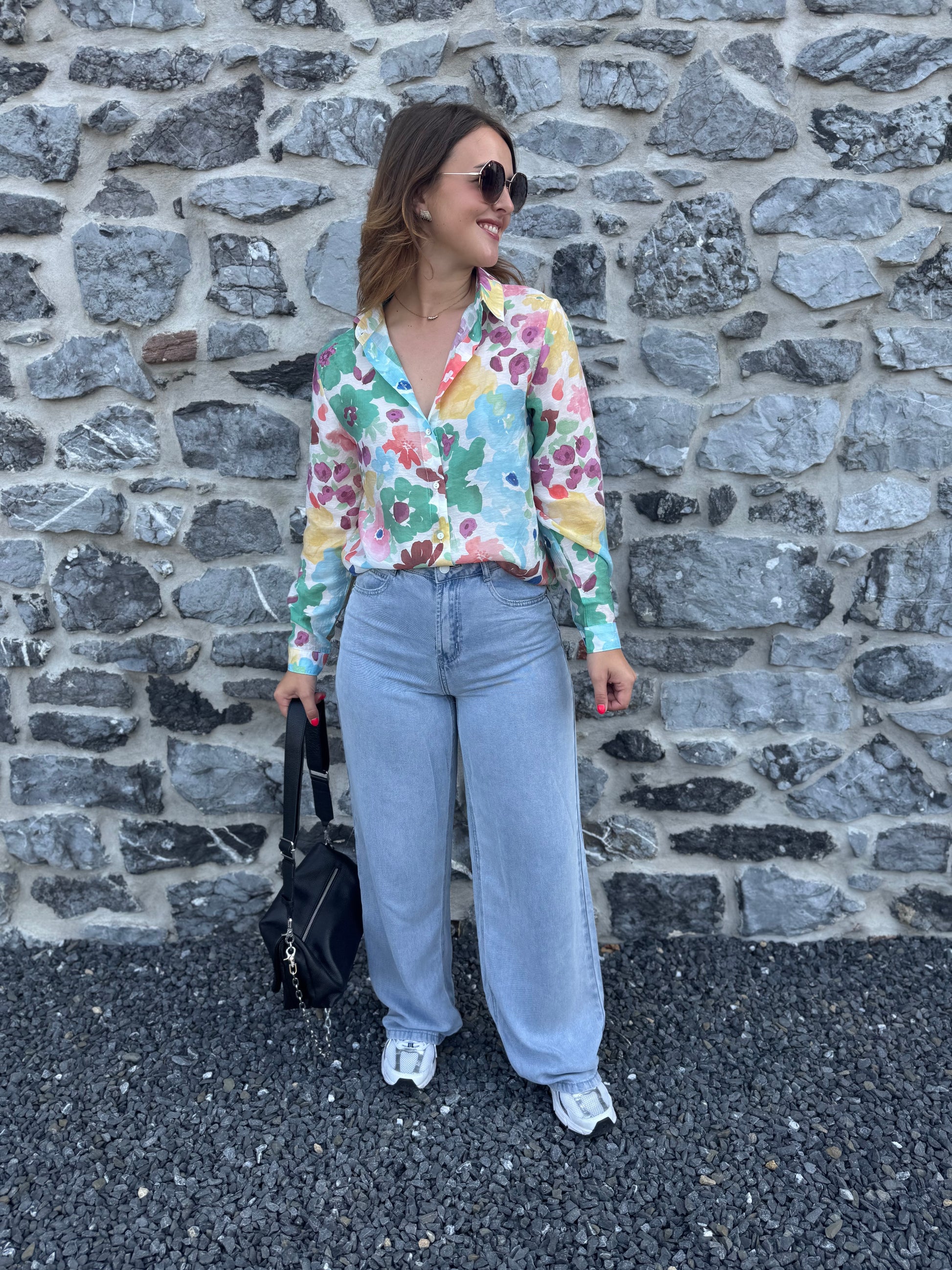 Le chemisier Charlie est présenté avec le pantalon Lyam.