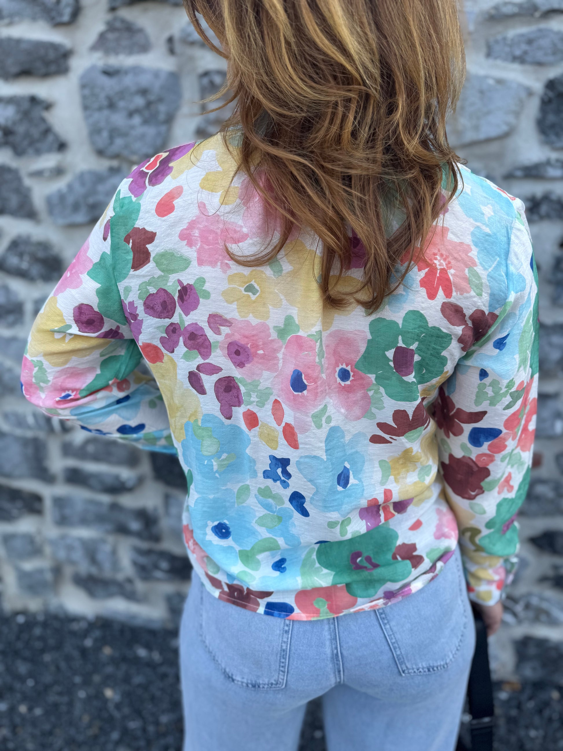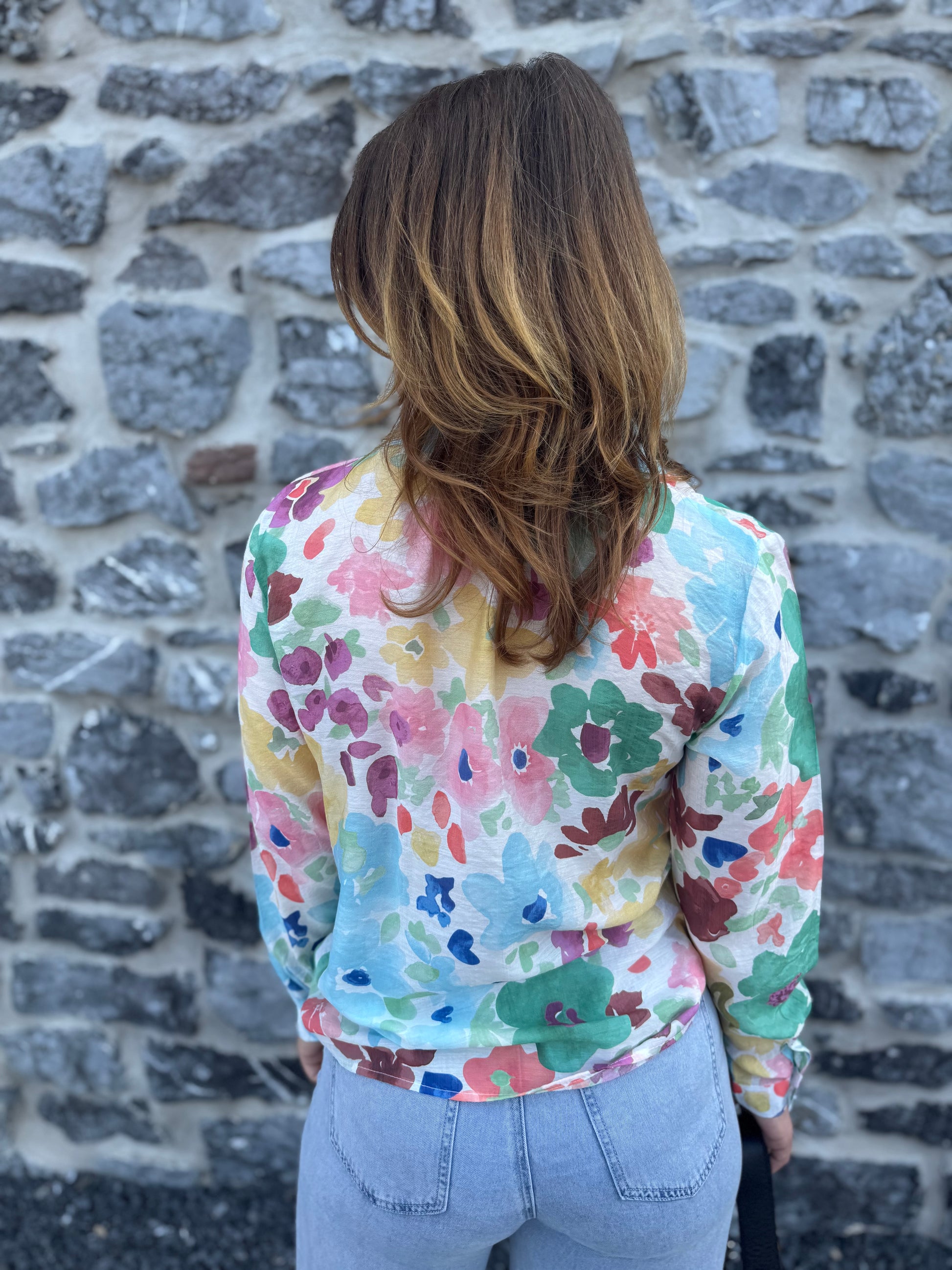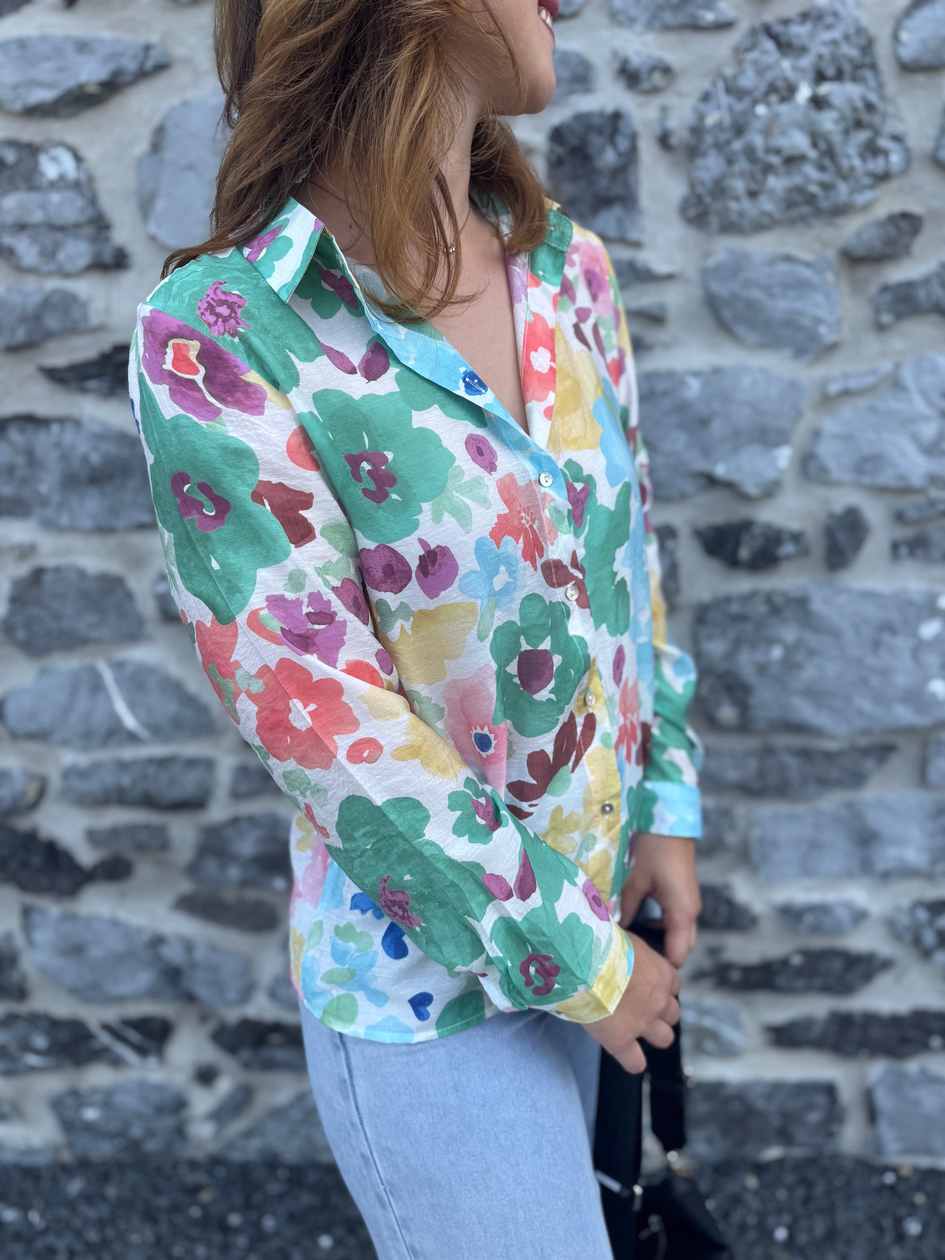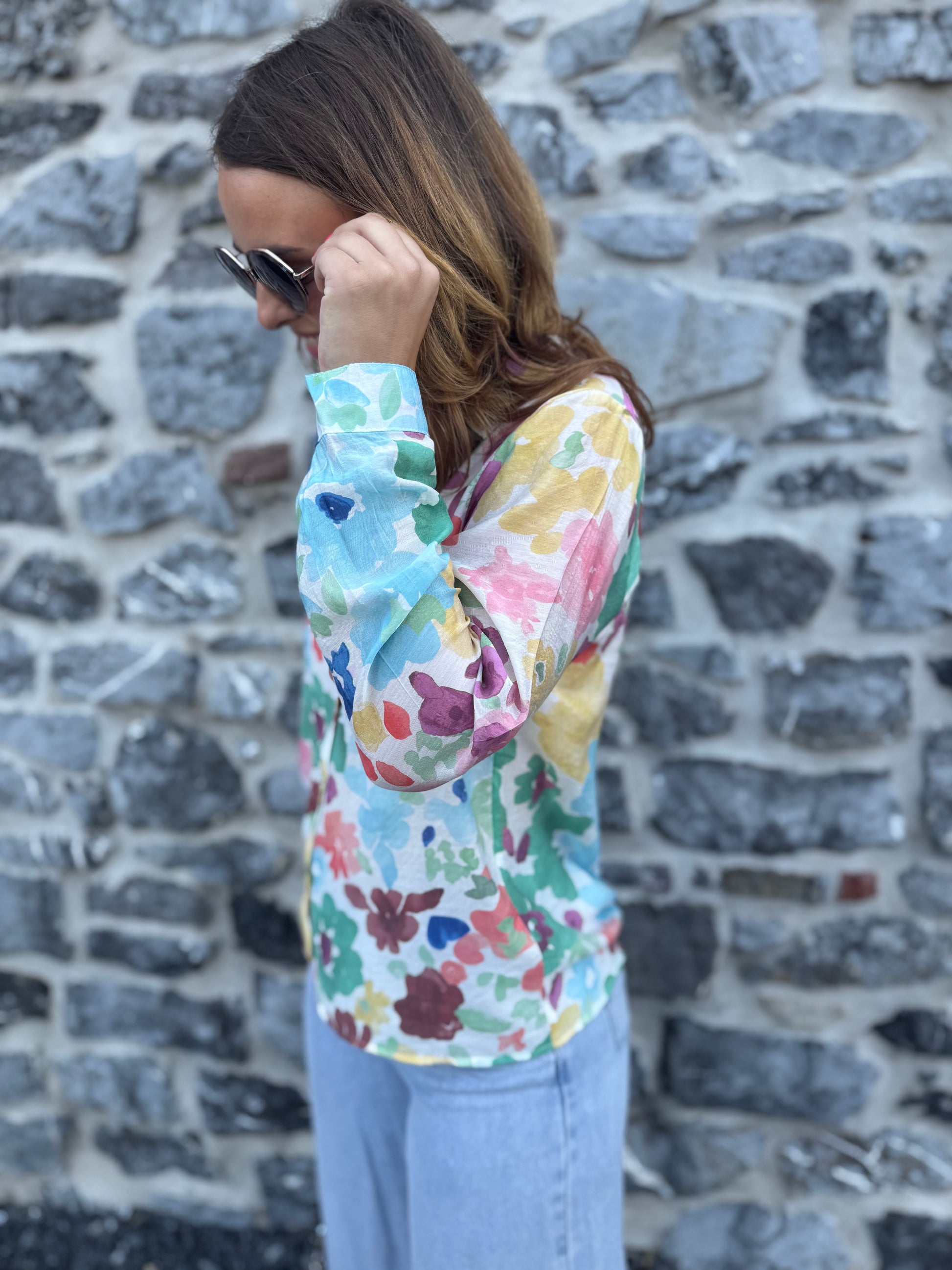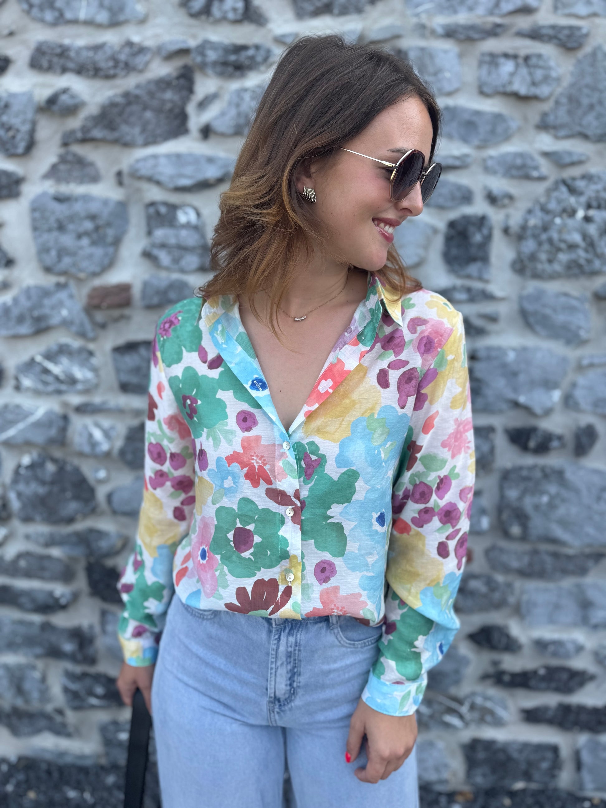 Le chemisier Charlie est présenté avec le pantalon Lyam.