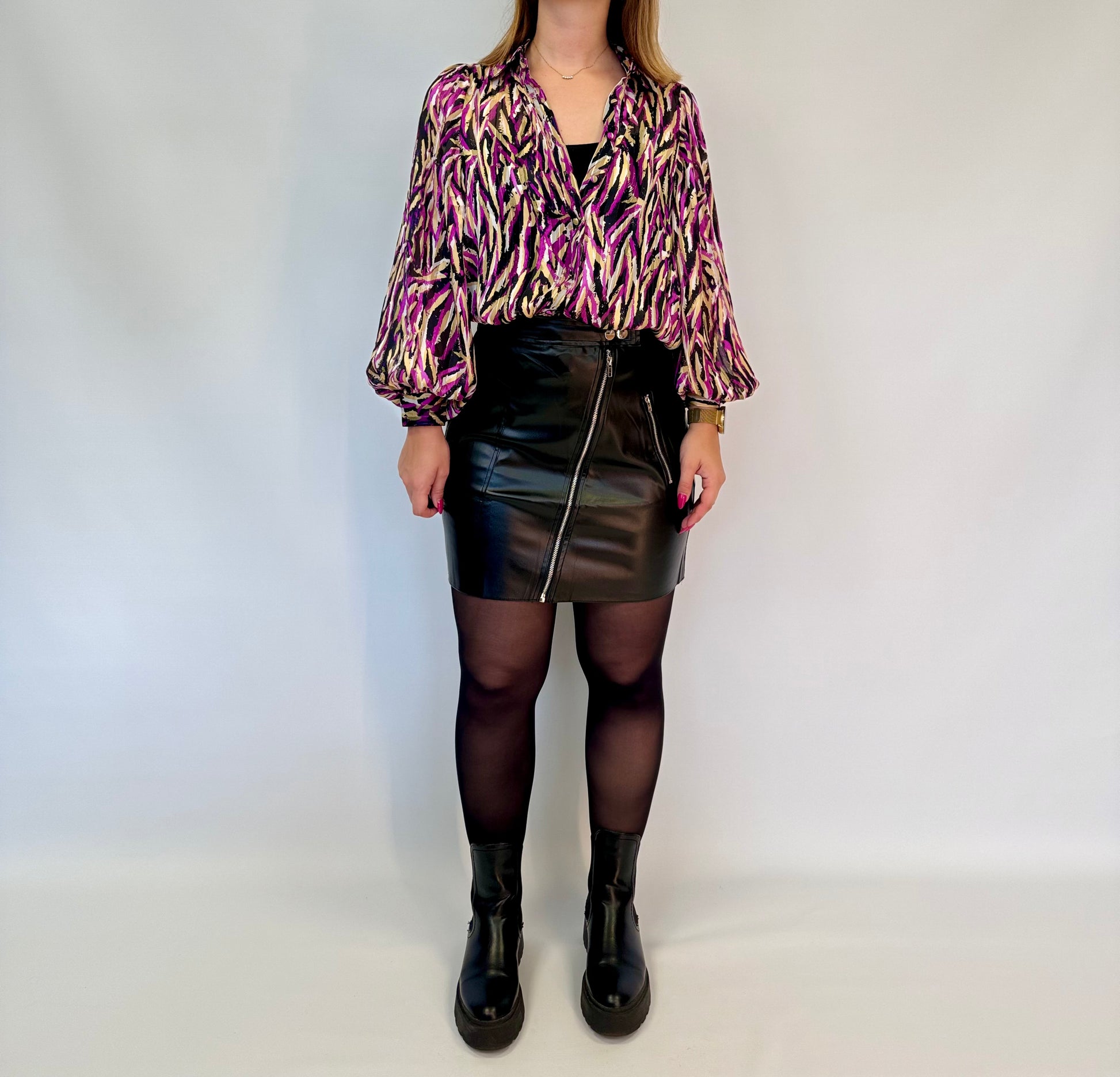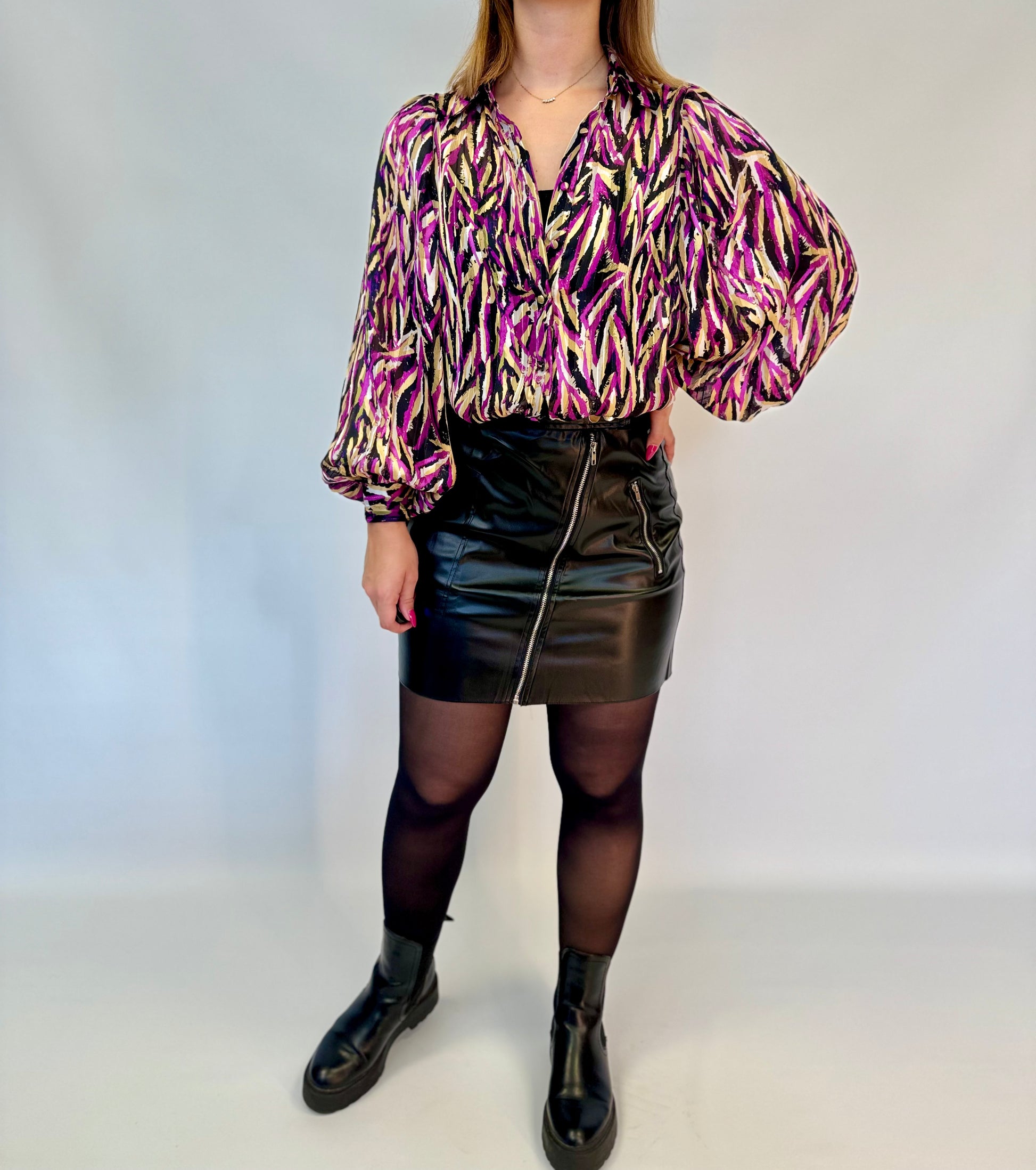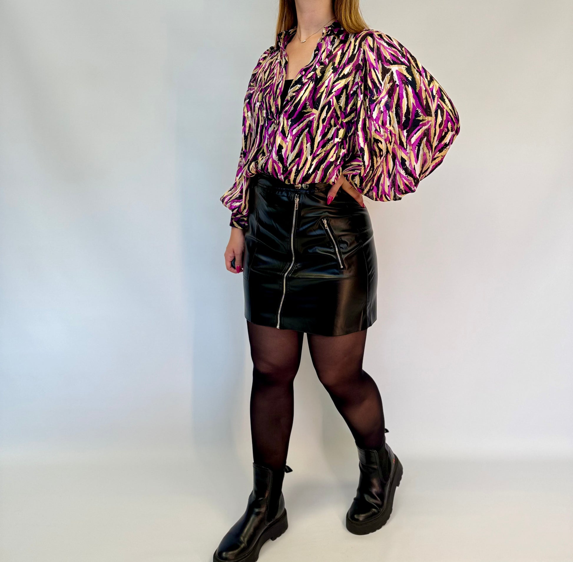 - Le chemisier Lyo est présenté avec la jupe Laly