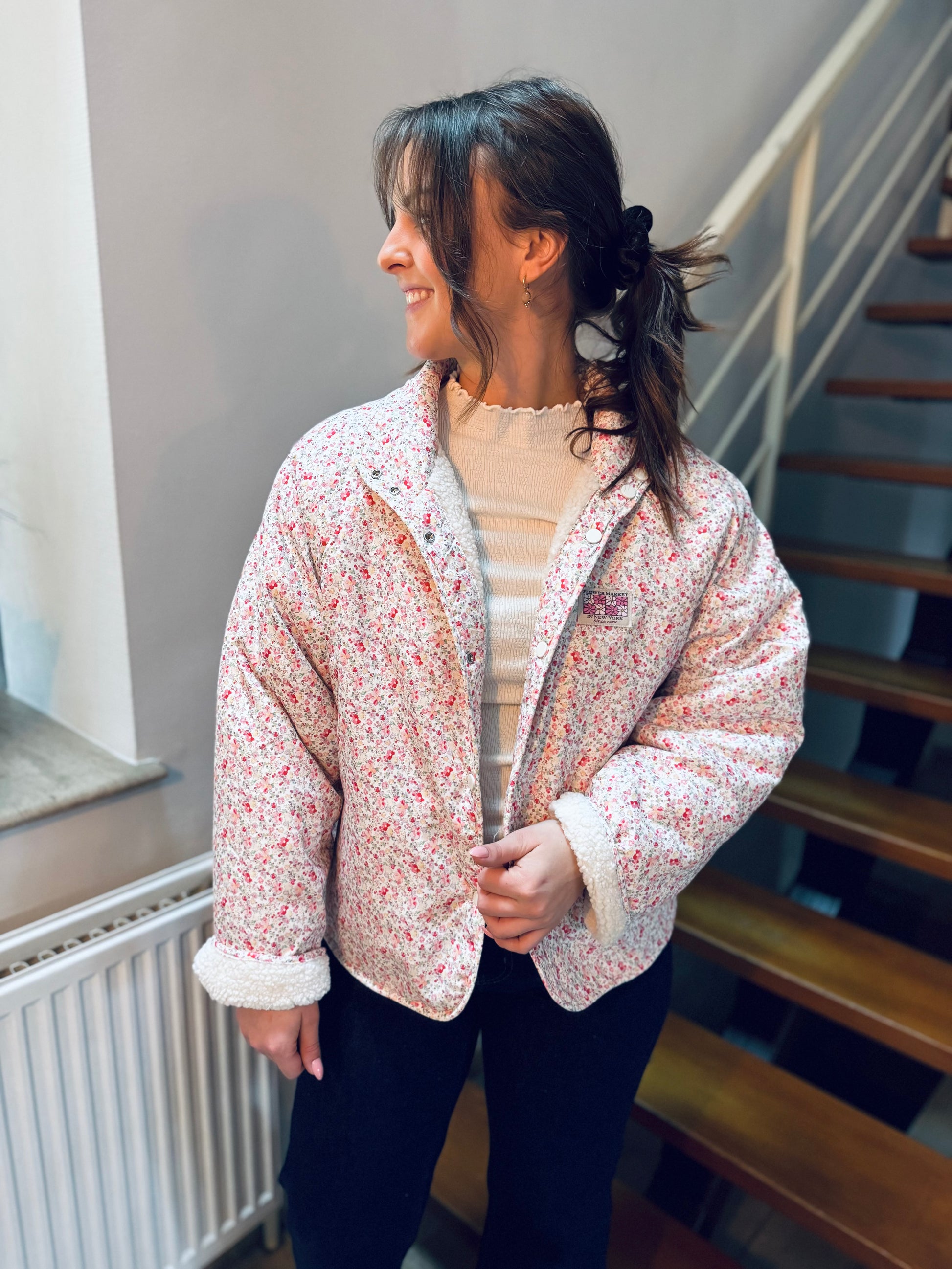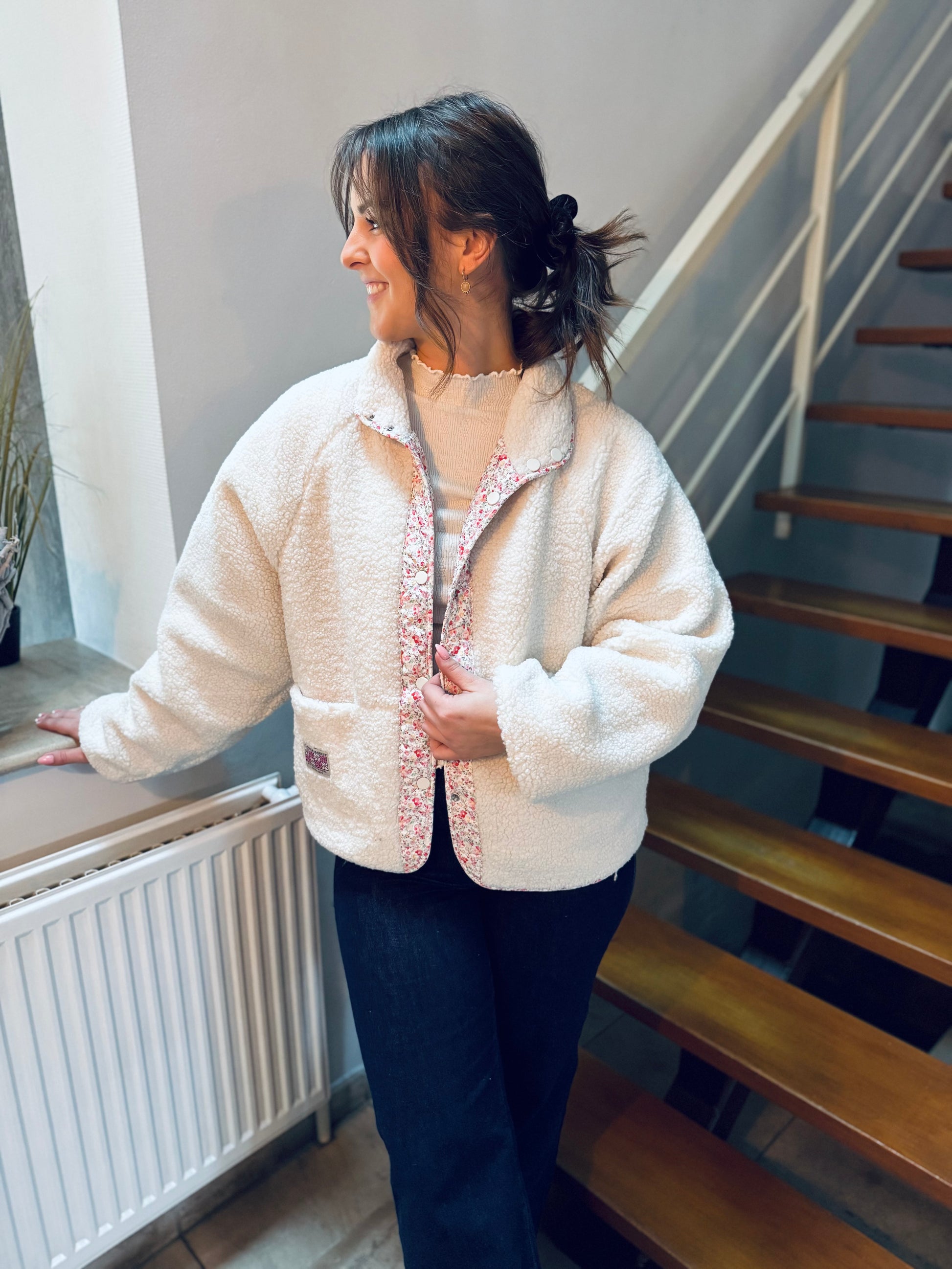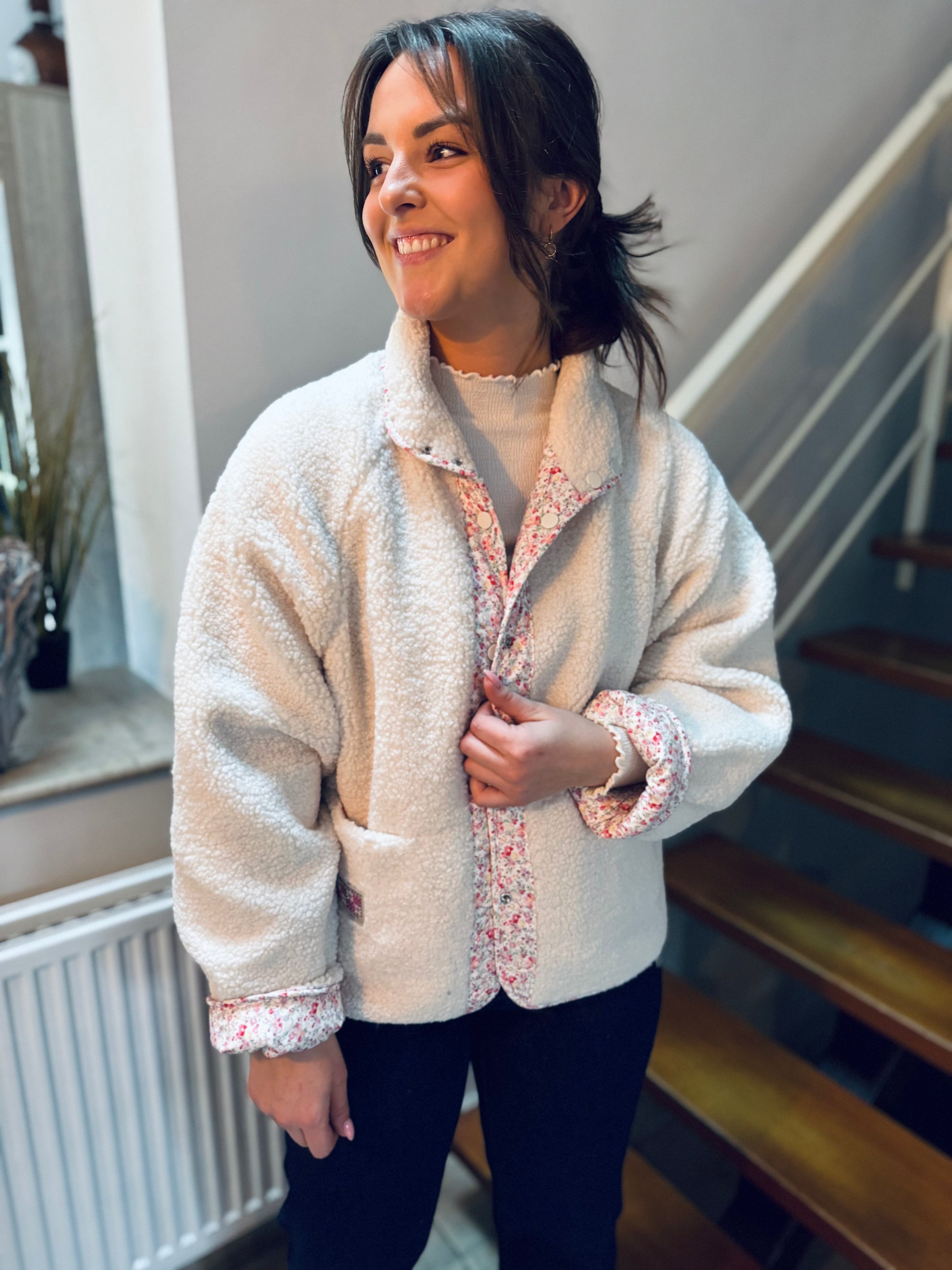 Un côté moumoute écru pour un look cocooning chic et un côté imprimé fleuri pour une touche bohème... Cette veste est le combo parfait pour réchauffer vos tenues tout en restant stylée.