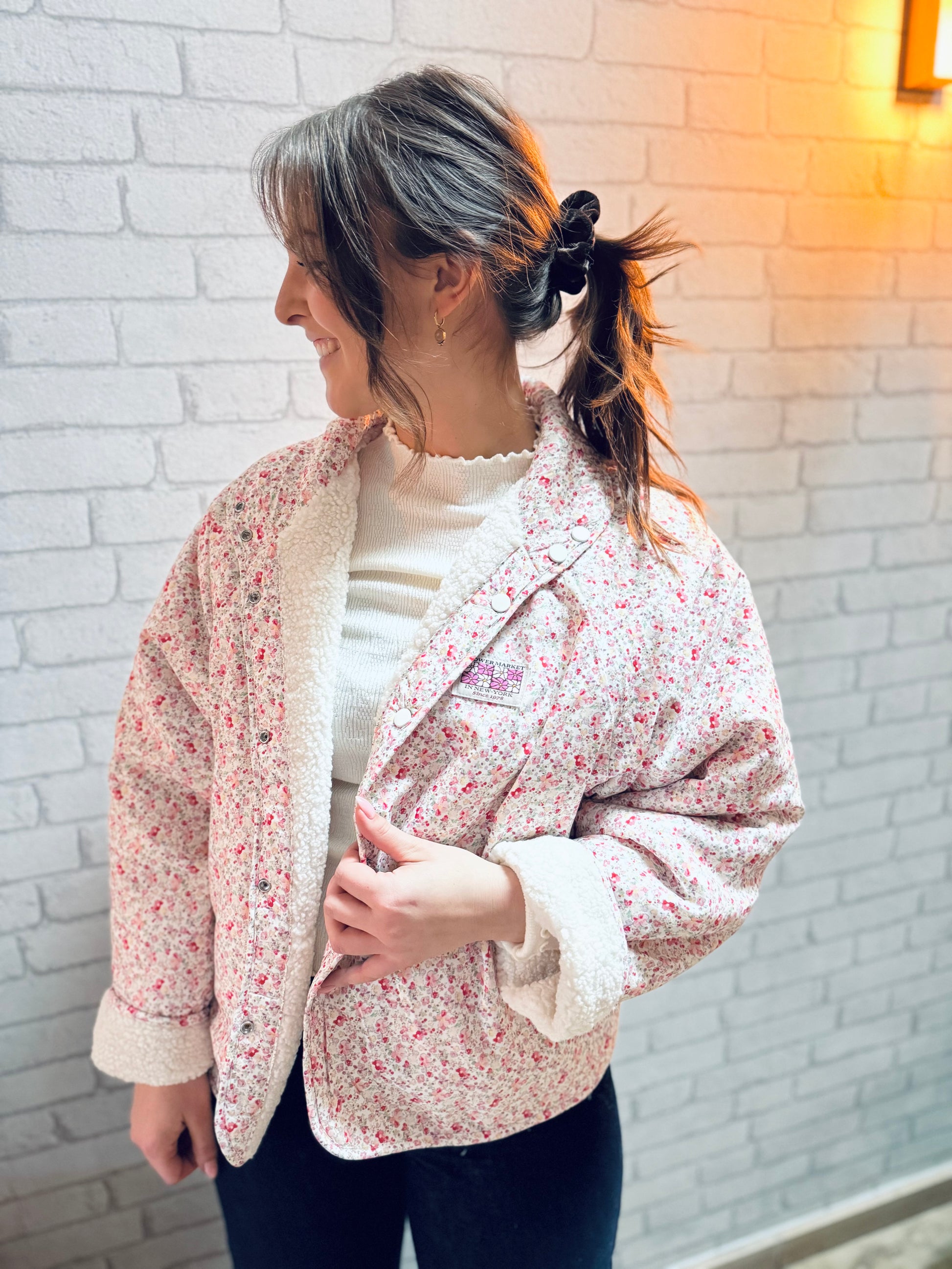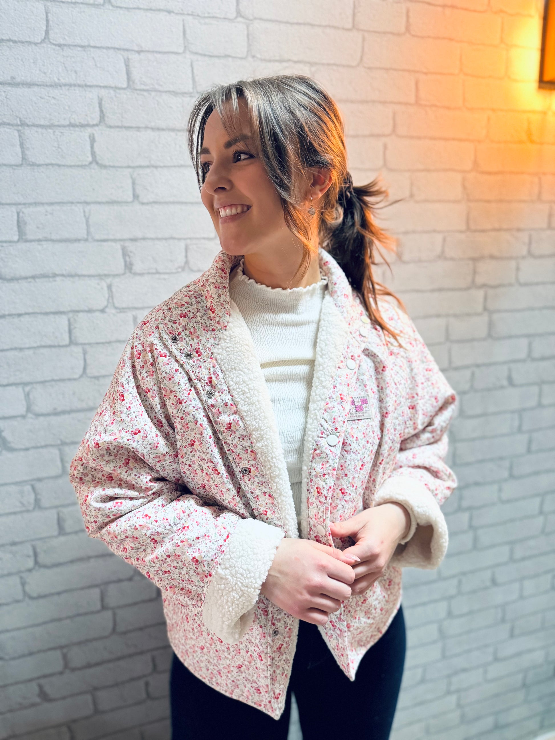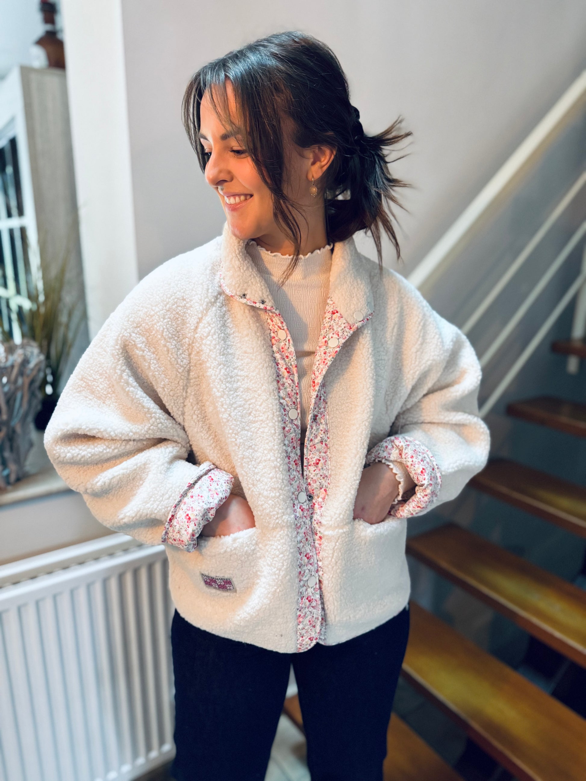 Un côté moumoute écru pour un look cocooning chic et un côté imprimé fleuri pour une touche bohème... Cette veste est le combo parfait pour réchauffer vos tenues tout en restant stylée.