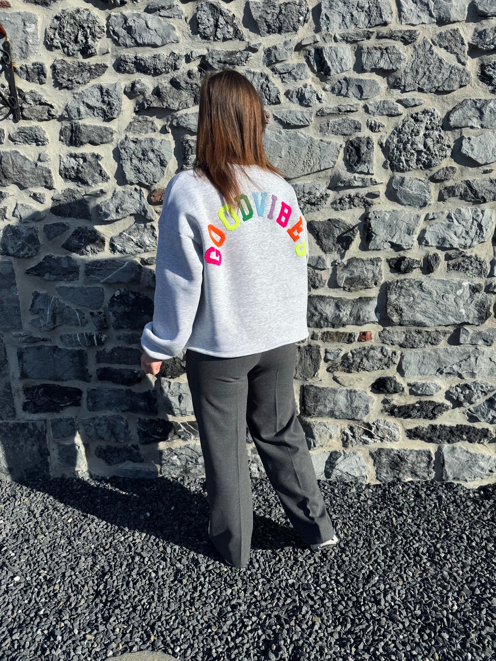 Avec sa coupe oversize et son message "GOODVIBES", ce sweat apporte la touche fun qui fait toute la différence.