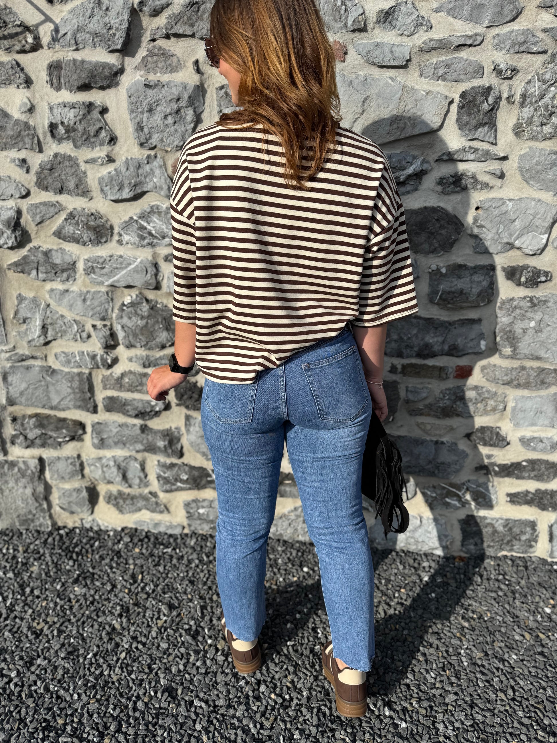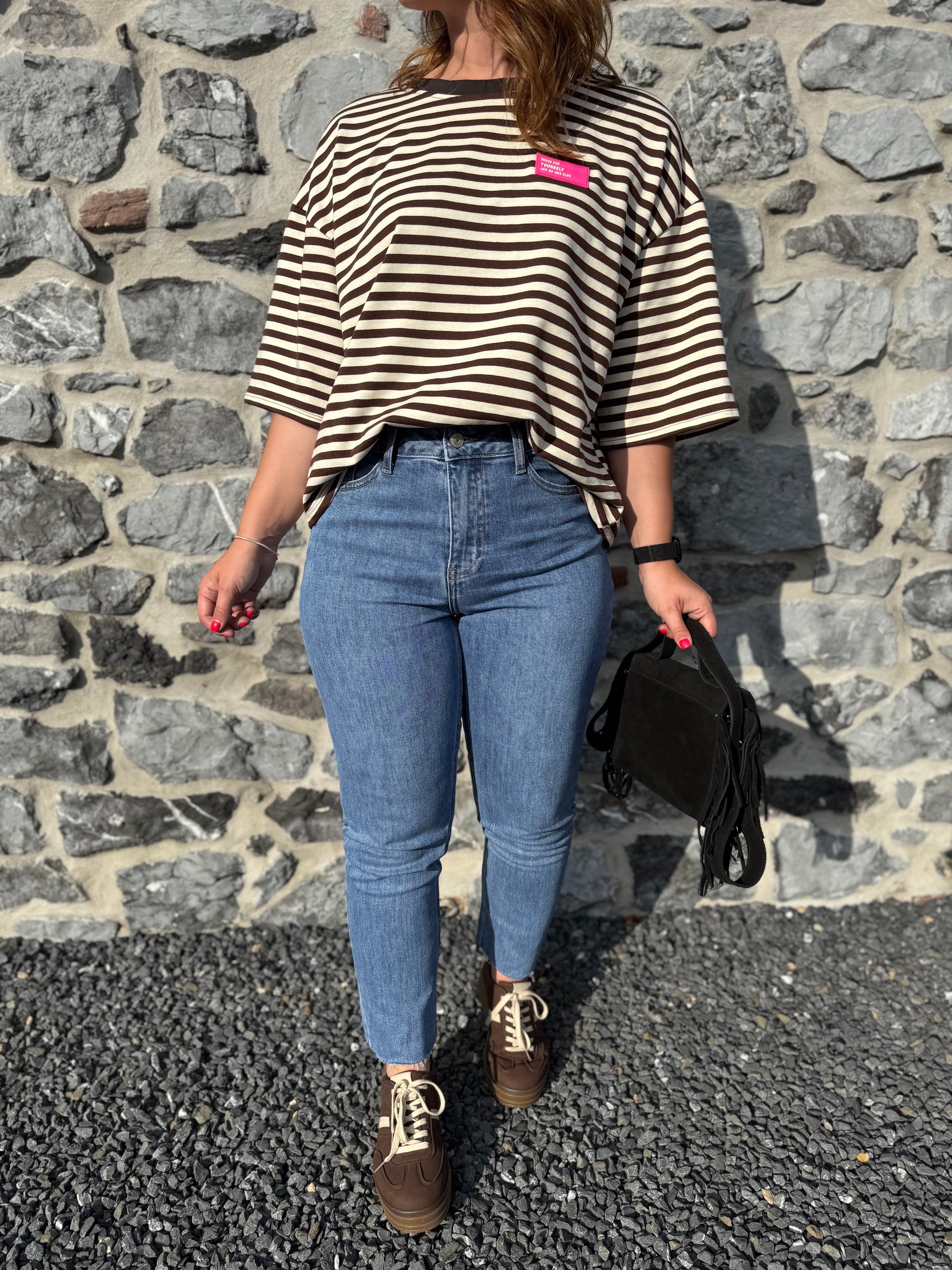 Notre modèle mesure 1m64 et porte la taille 38(M) pour son 38 habituel.