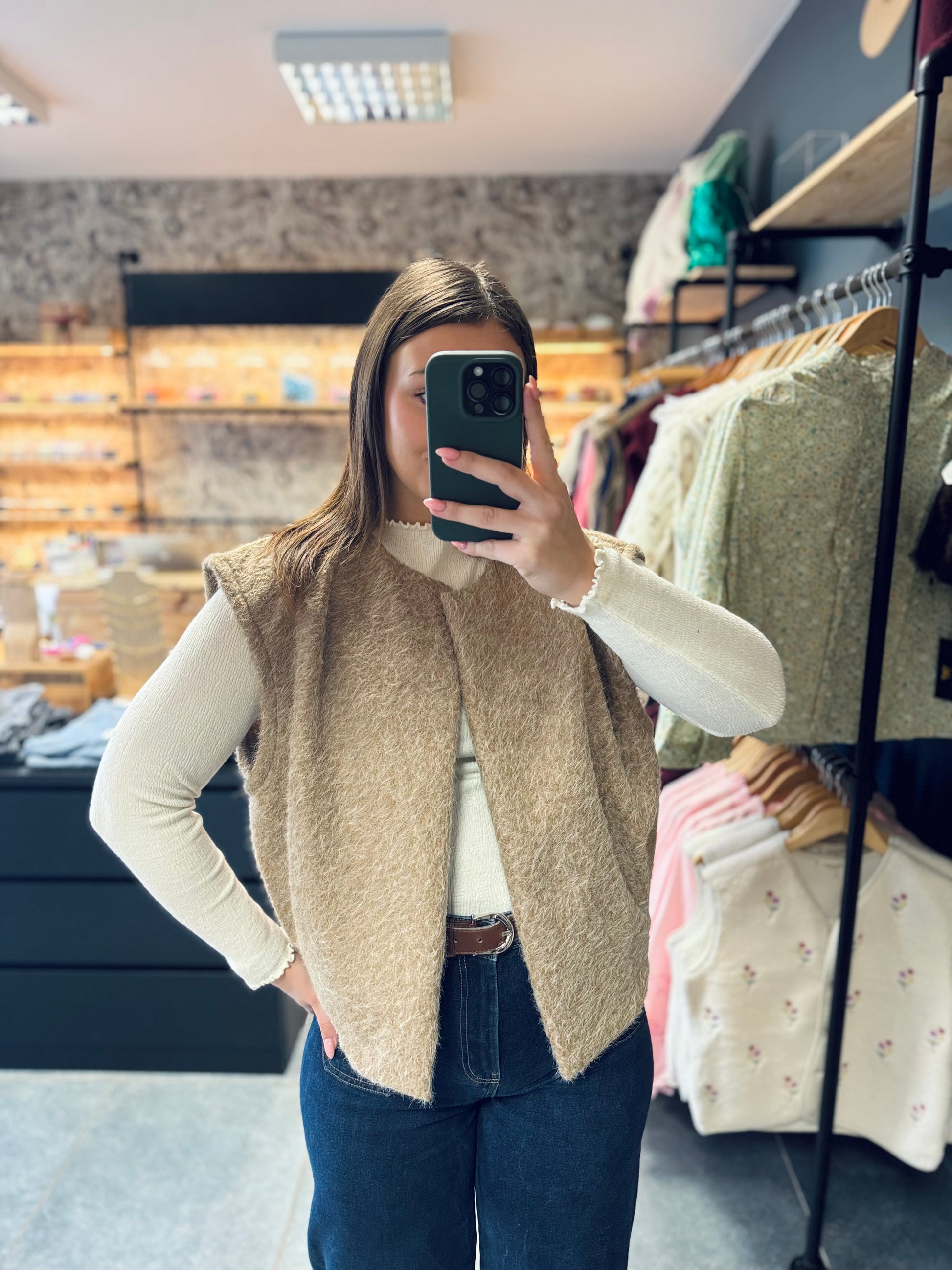 Ajoutez une touche cosy à vos looks avec ce gilet sans manches ! Parfait pour la mi-saison, il se porte facilement sur un pull, un chemisier,... pour un style tendance et confortable.