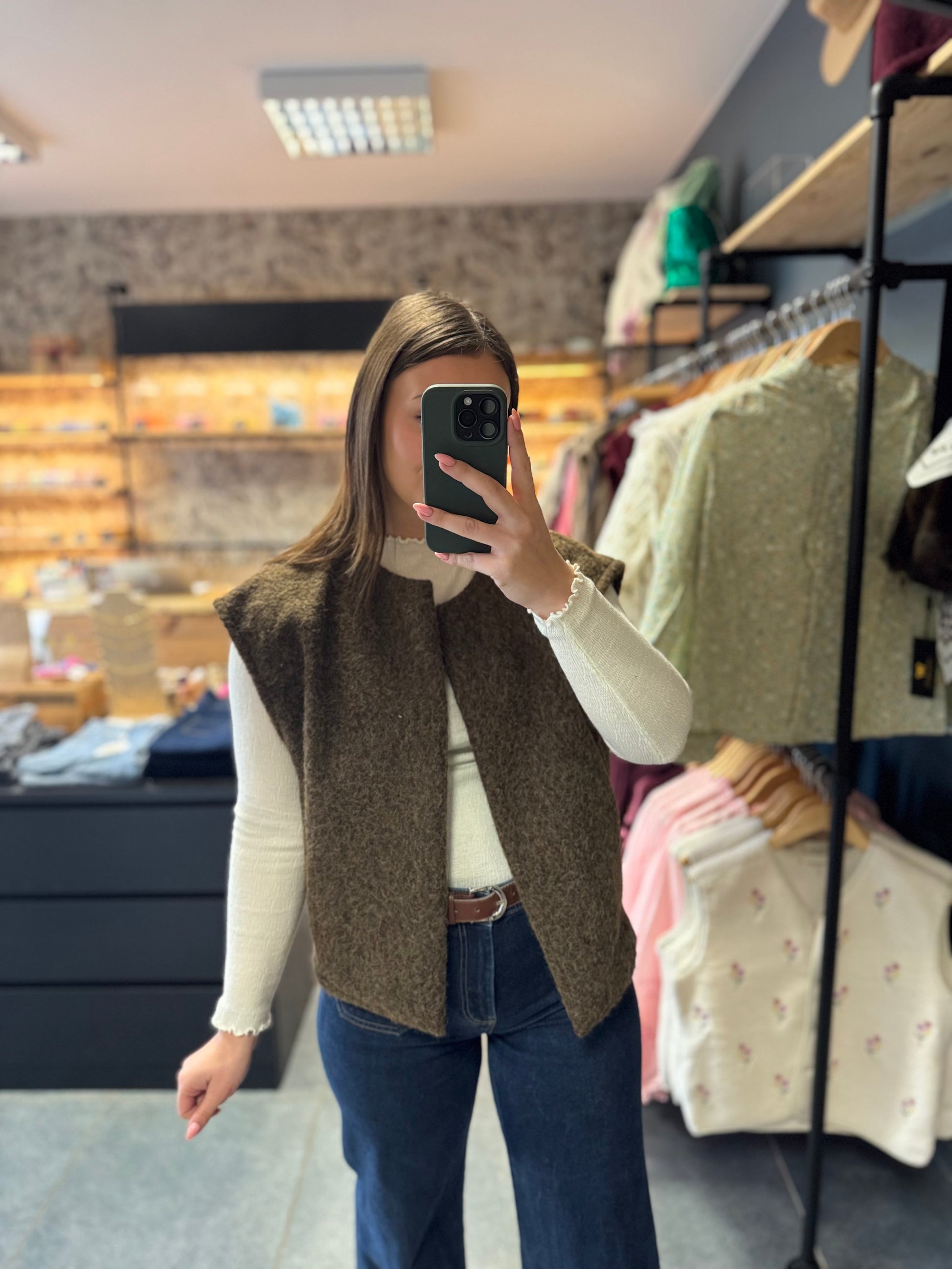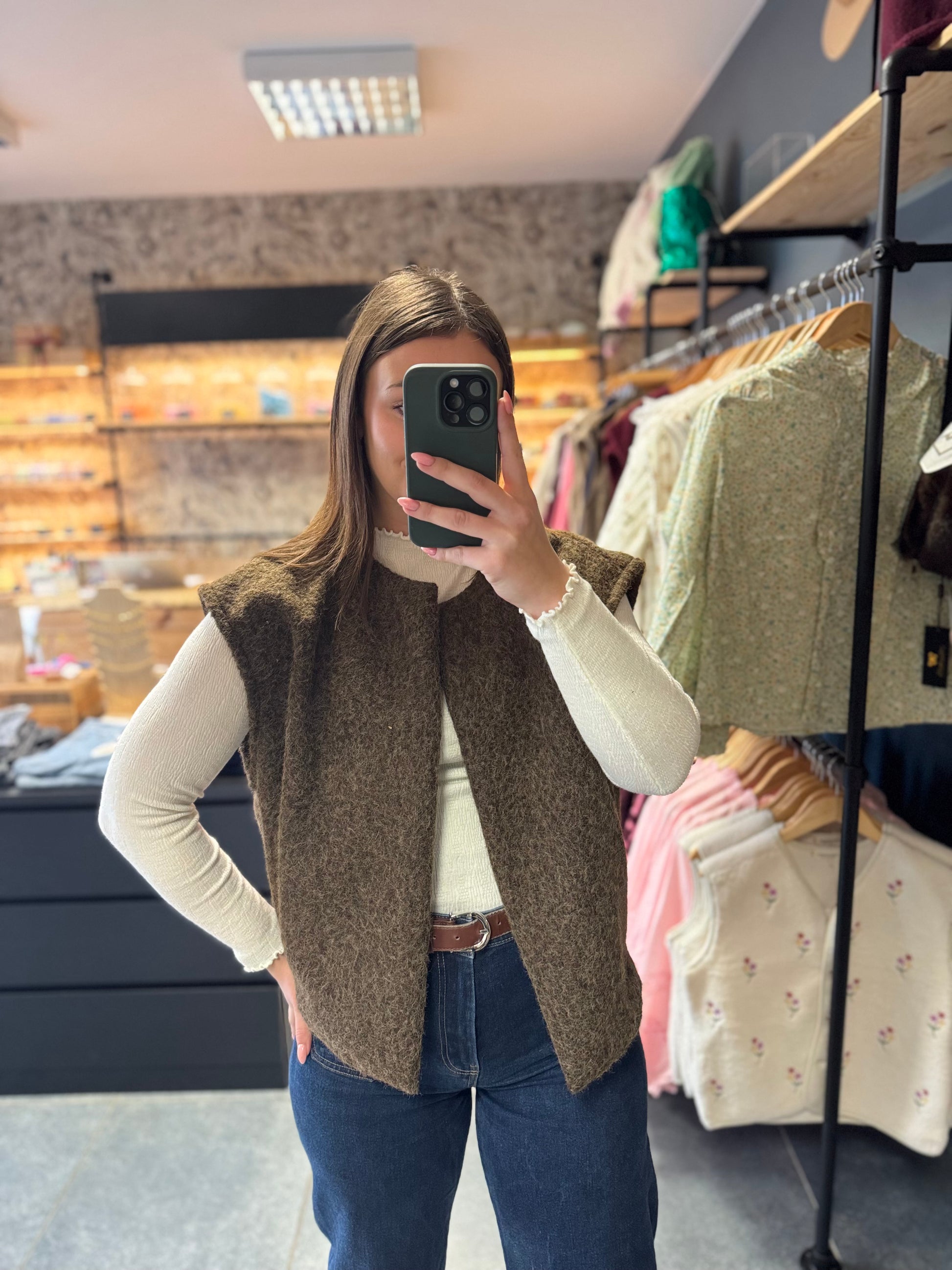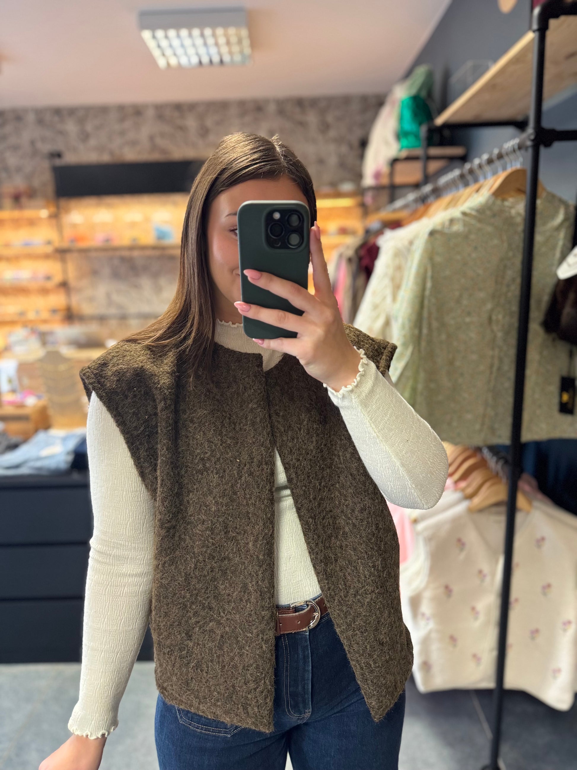 Ajoute une touche cosy à tes looks avec ce gilet sans manches! Parfait pour la mi-saison, il se porte facilement sur un pull, un chemisier,... pour un style tendance et confortable.