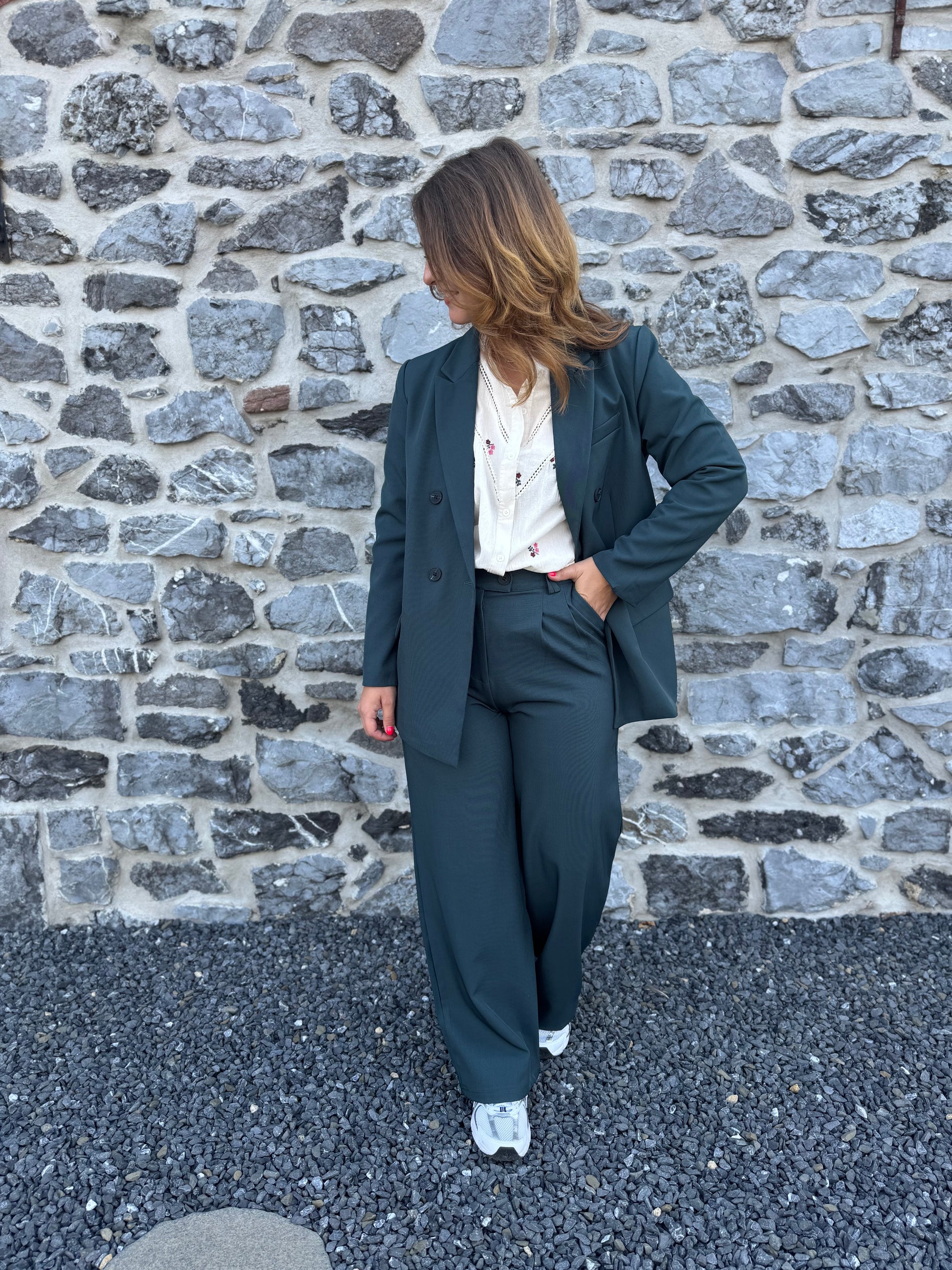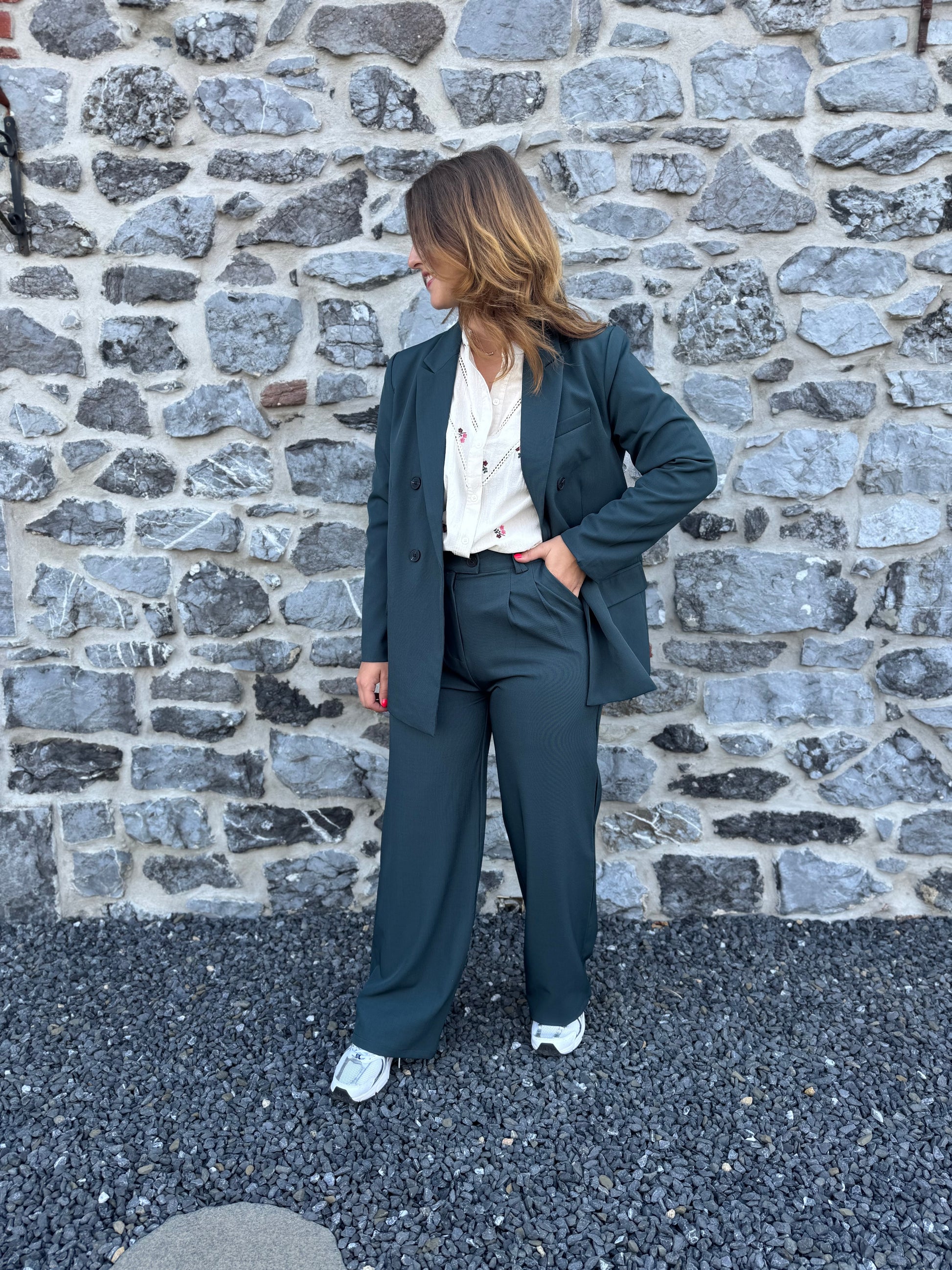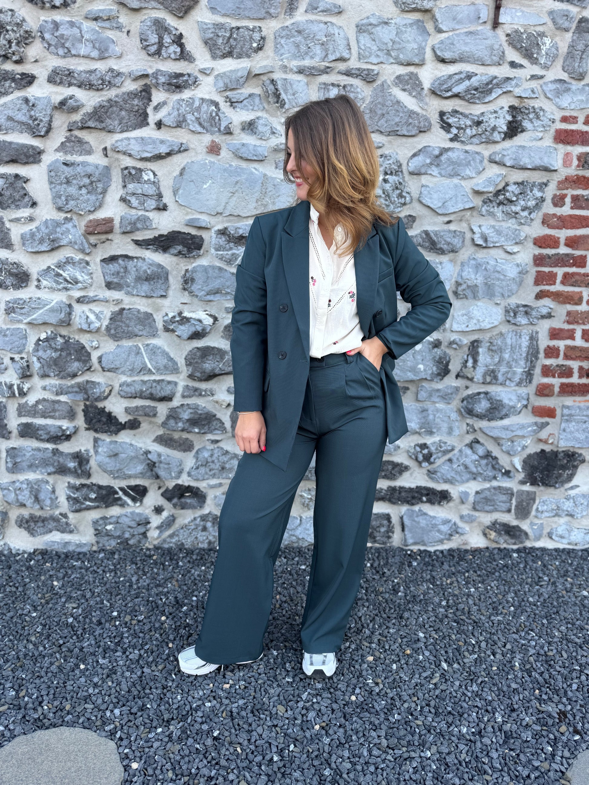 L'ensemble Aubane est présenté avec le chemisier Evy.