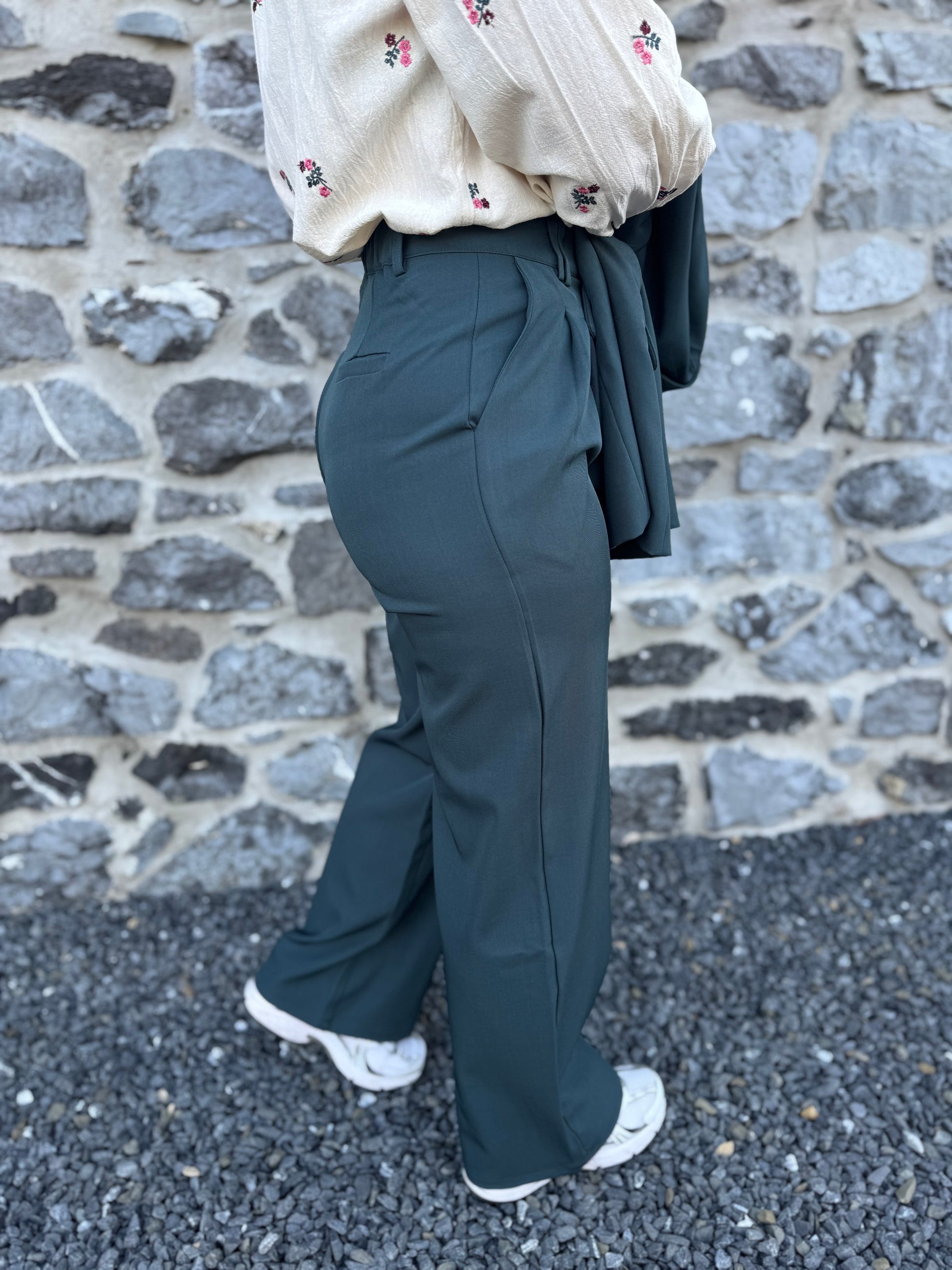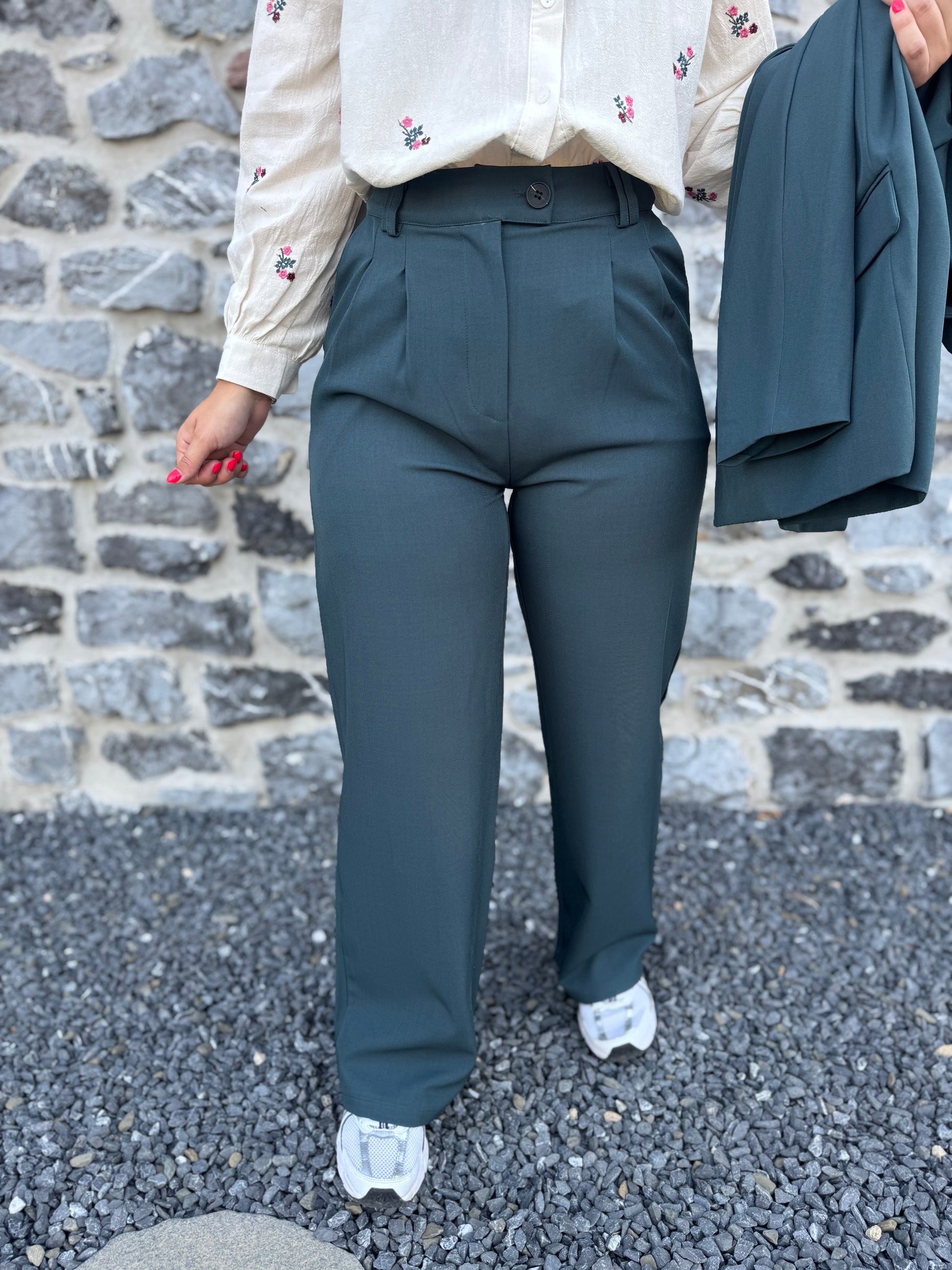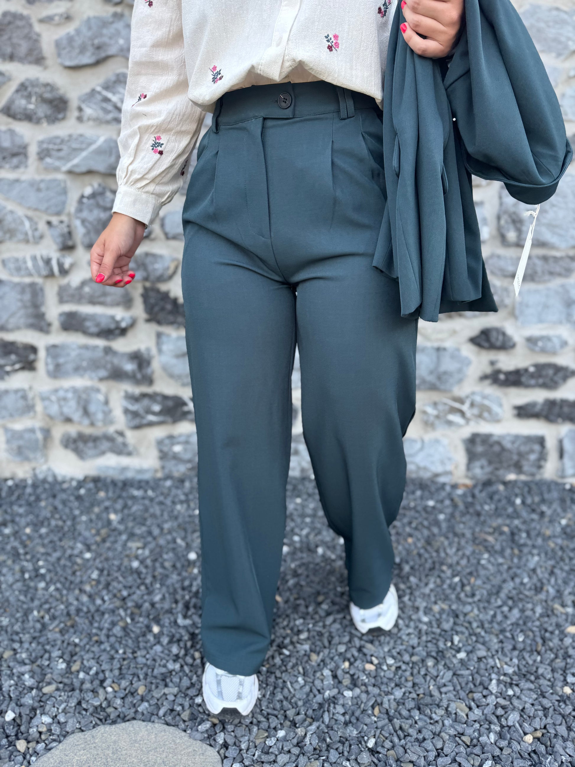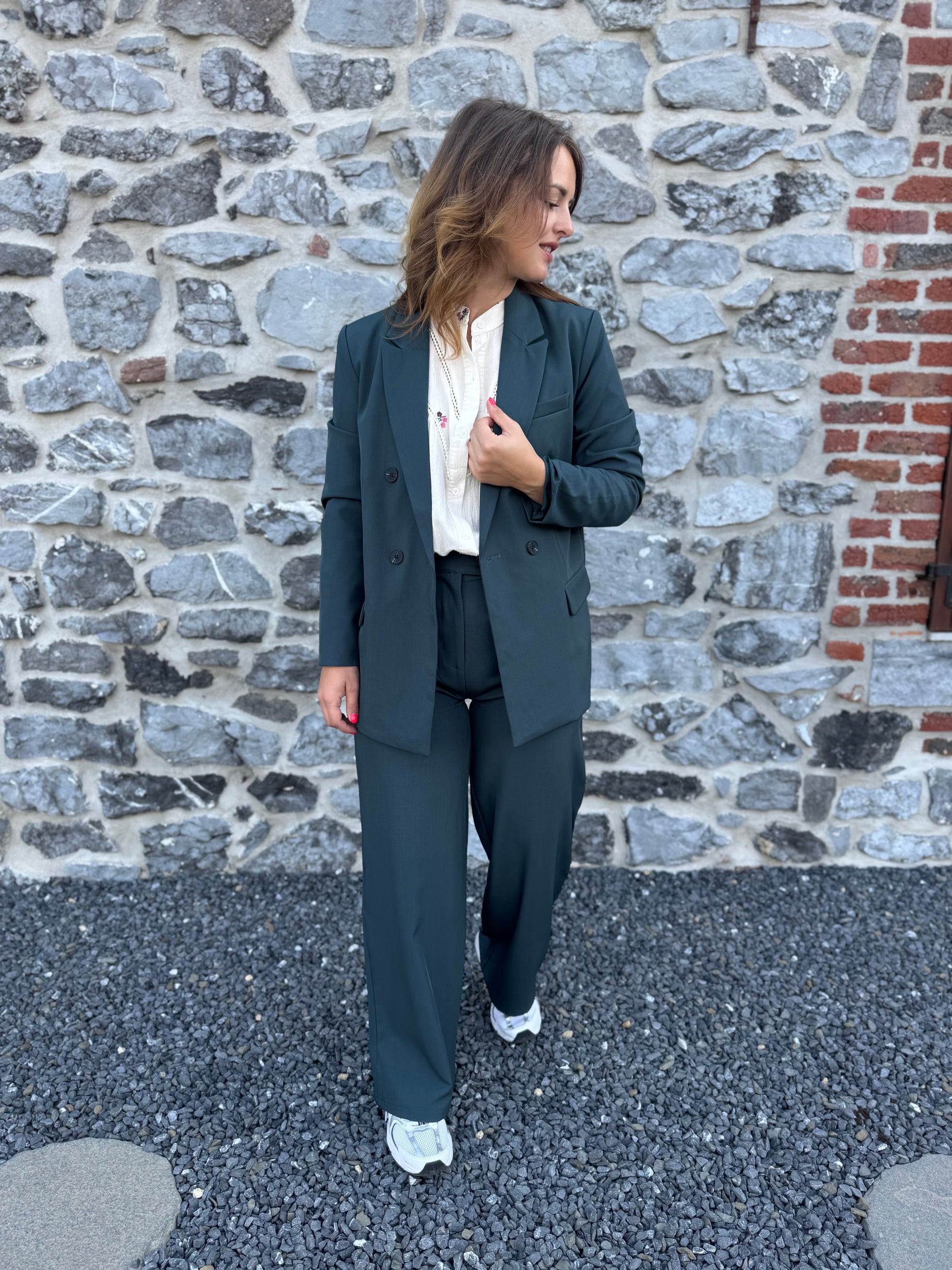 L'ensemble Aubane est présenté avec le chemisier Evy.