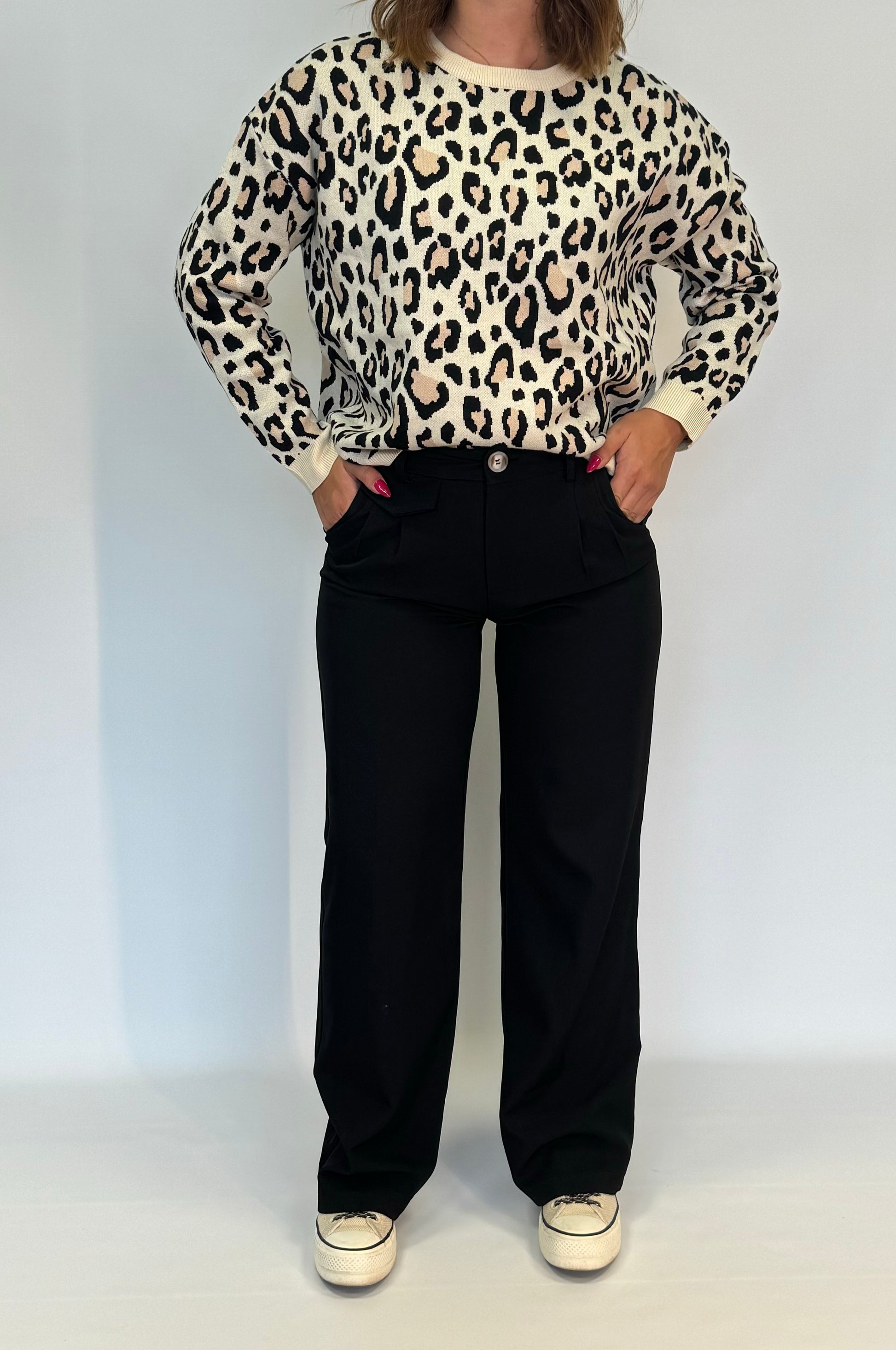 - Le pantalon Louis est présenté avec le pull Léo