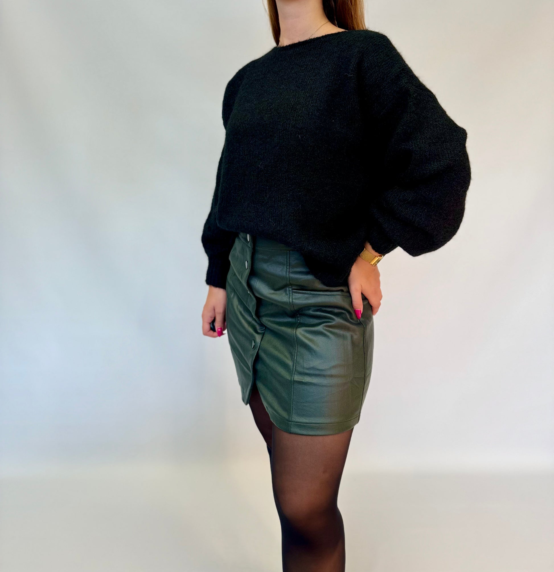 - Le pull Hary est présenté avec la jupe Théa et la jupe Cléo