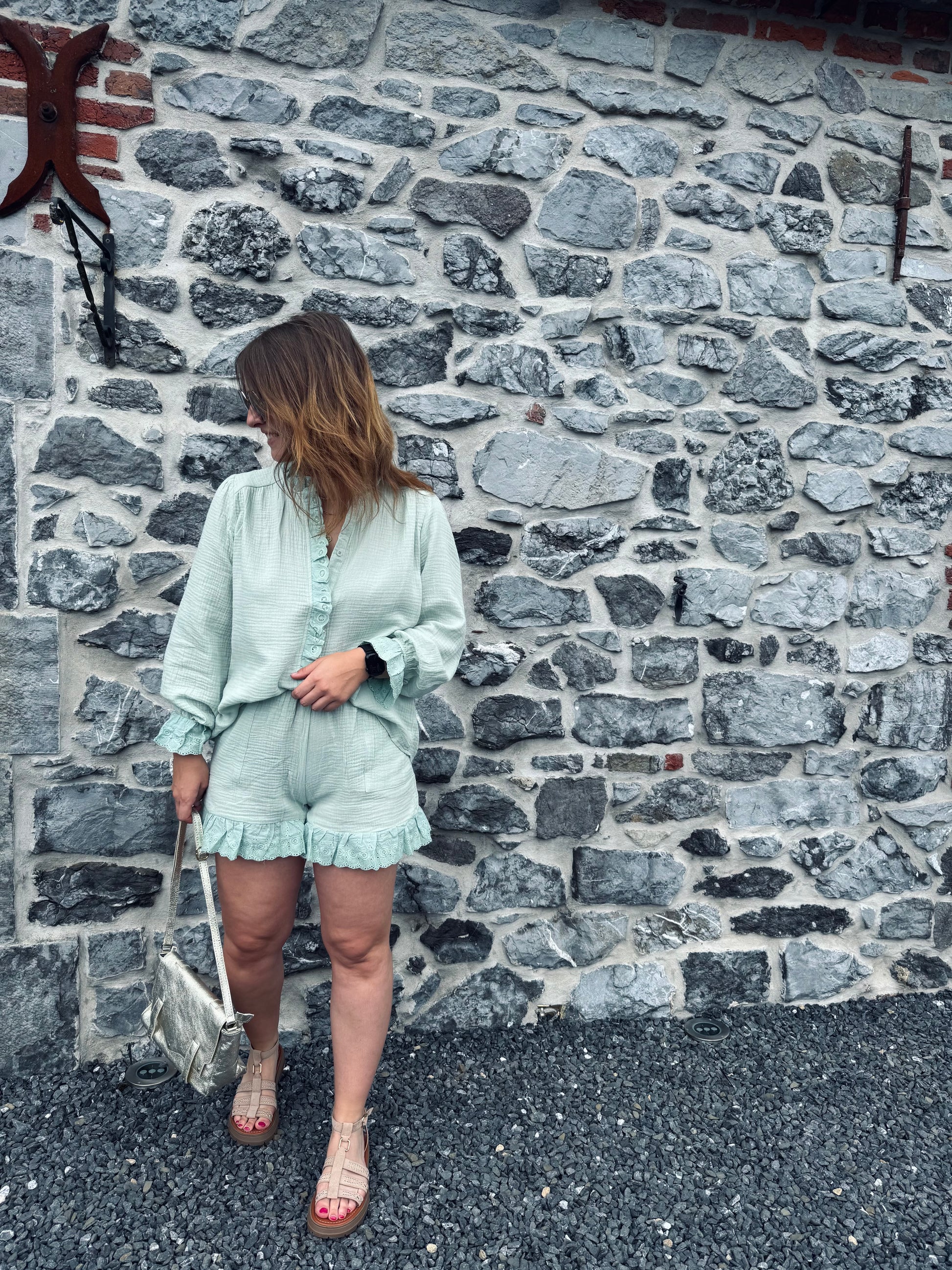 L'ensemble Gaby est présenté avec les sandales Monia.